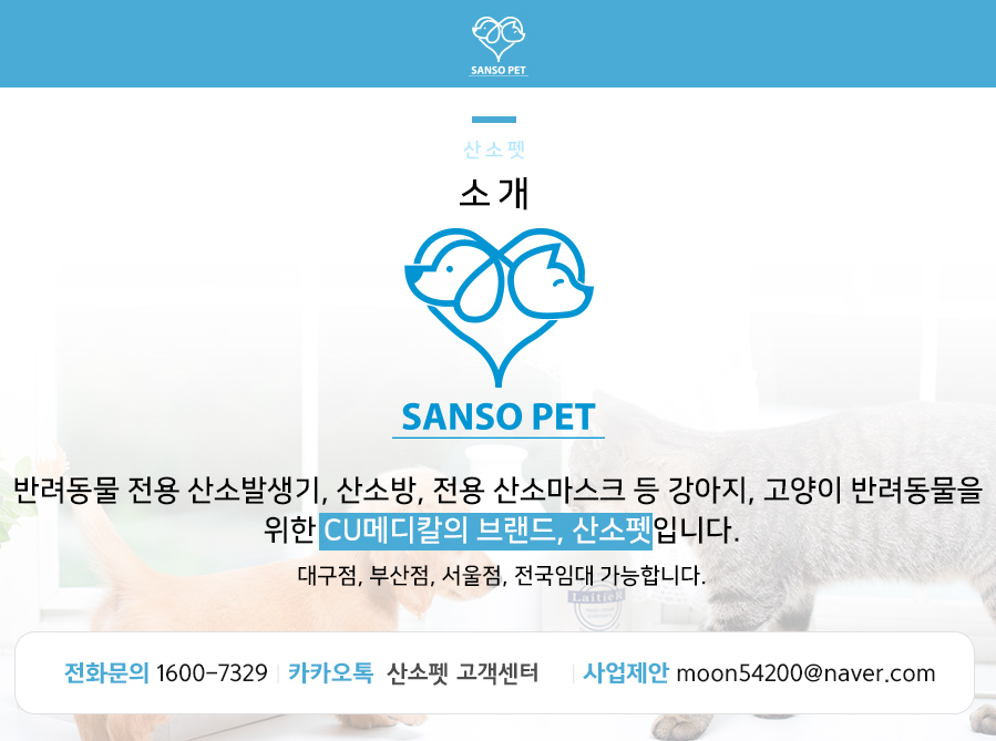 강아지, 고양이 반려동물을 위한 CU메디칼의 브랜드, 산소펫 입니다.